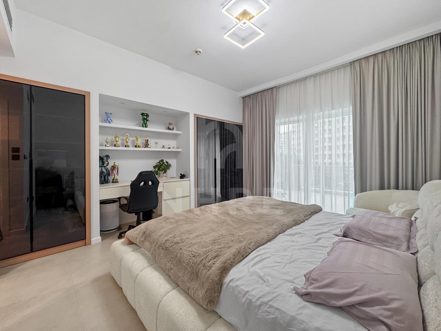 Residents enjoy numerous amenities including a state-of-the-art gym, expansive pool, children’s area, running track, and a variety of ground-floor shopping and dining options. Safety is paramount, with round-the-clock security and ample covered parking.
