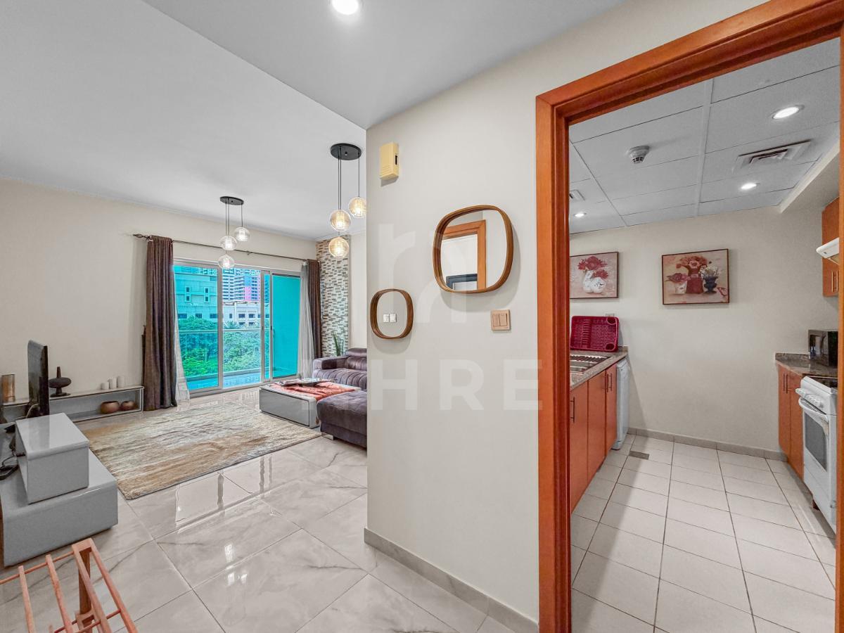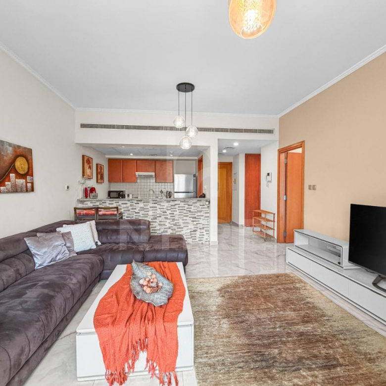 This well-maintained residential building offers a peaceful lifestyle amidst lush greenery, lakes, and shaded walkways, just a short 15-minute drive from Dubai’s beach.